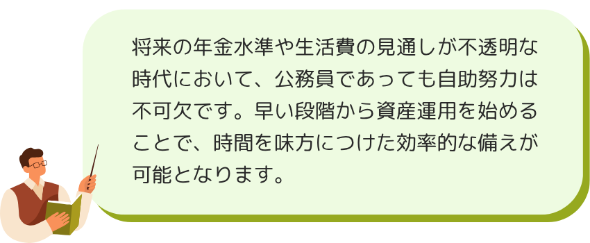 しかし、将来を見据えた資産形成は、公務員にとっても重要である。