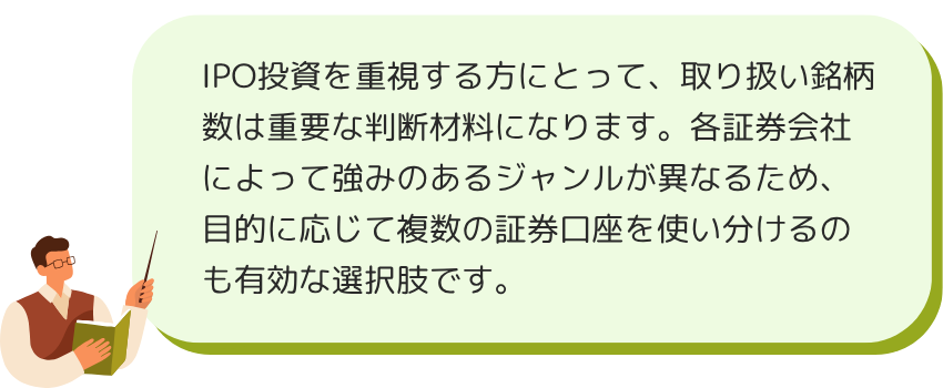 ①IPOの取扱銘柄が少なめ