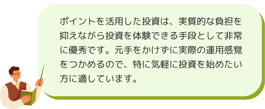 楽天市場などで貯めたポイントも簡単に投資できるので、ポイ活などの副業とあわせて投資成果を大きくすることができる
