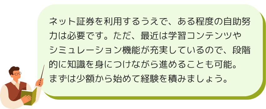 その点は、実店舗を持つ総合証券に比べてデメリットに感じることも多いかもしれない。