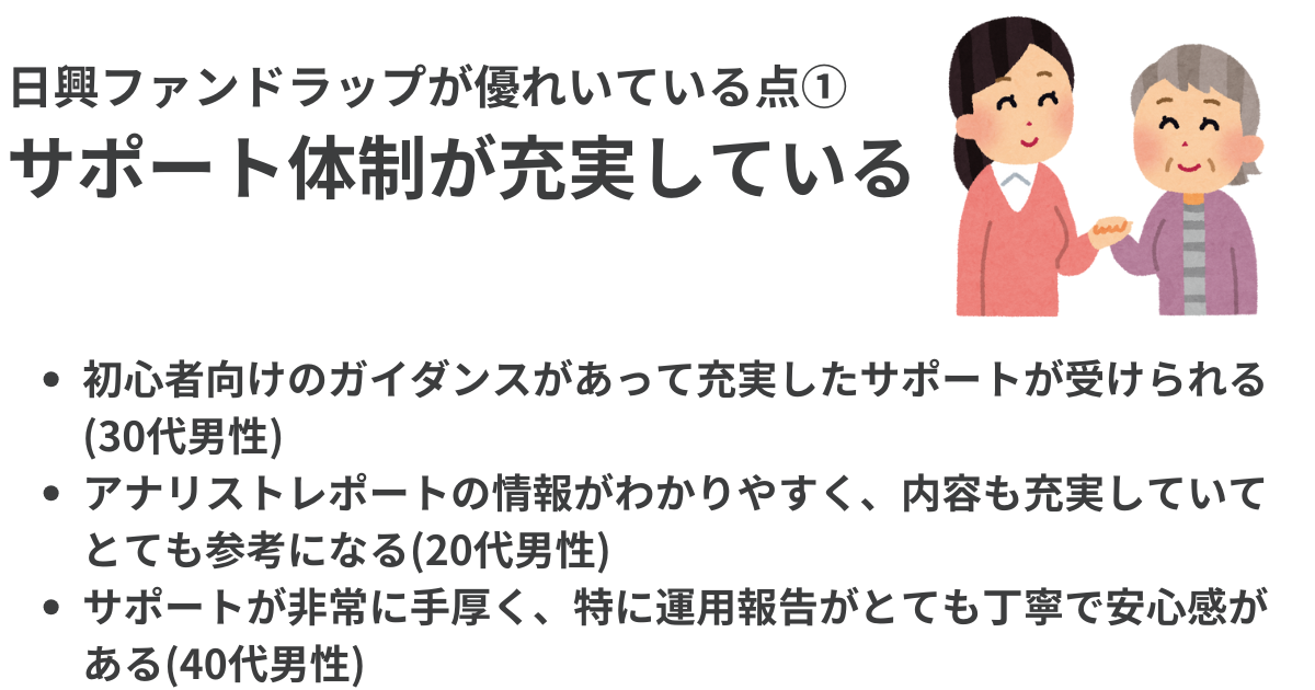 日興ファンドラップを高く評価する回答者の多くは、その理由に「サポート体制が充実している」点を挙げていた。