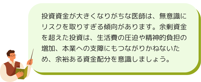 医師が資産運用を行う際、余剰資金以上は投資しないようにしよう。