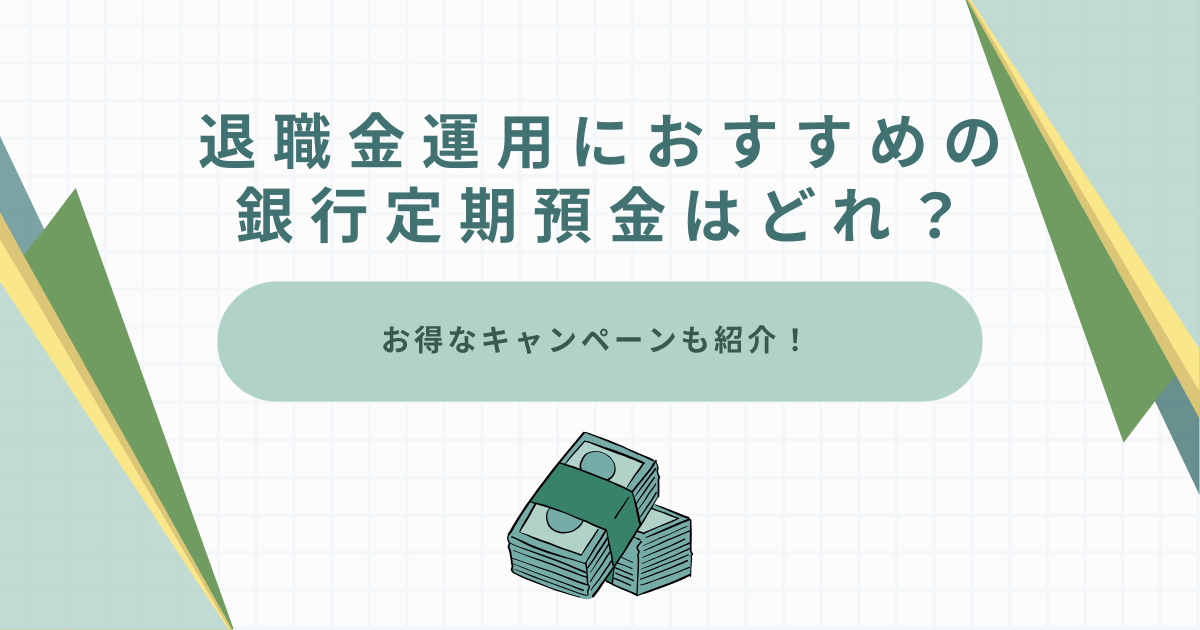 銀行によっては退職者向けの専用プランや特別キャンペーンを提供しているため、退職後すぐは一旦定期預金に預けて、じっくりとその後の運用方法を考えるといった使い方もできる。